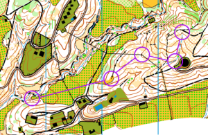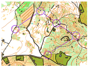 - El corredor puede utilizar elementos lineales menos claros para situarse en el terreno. Por ejemplo, posicionarse en un cruce de un camino marcado con un surco o muro de piedra (elementos lineales menos evidentes).