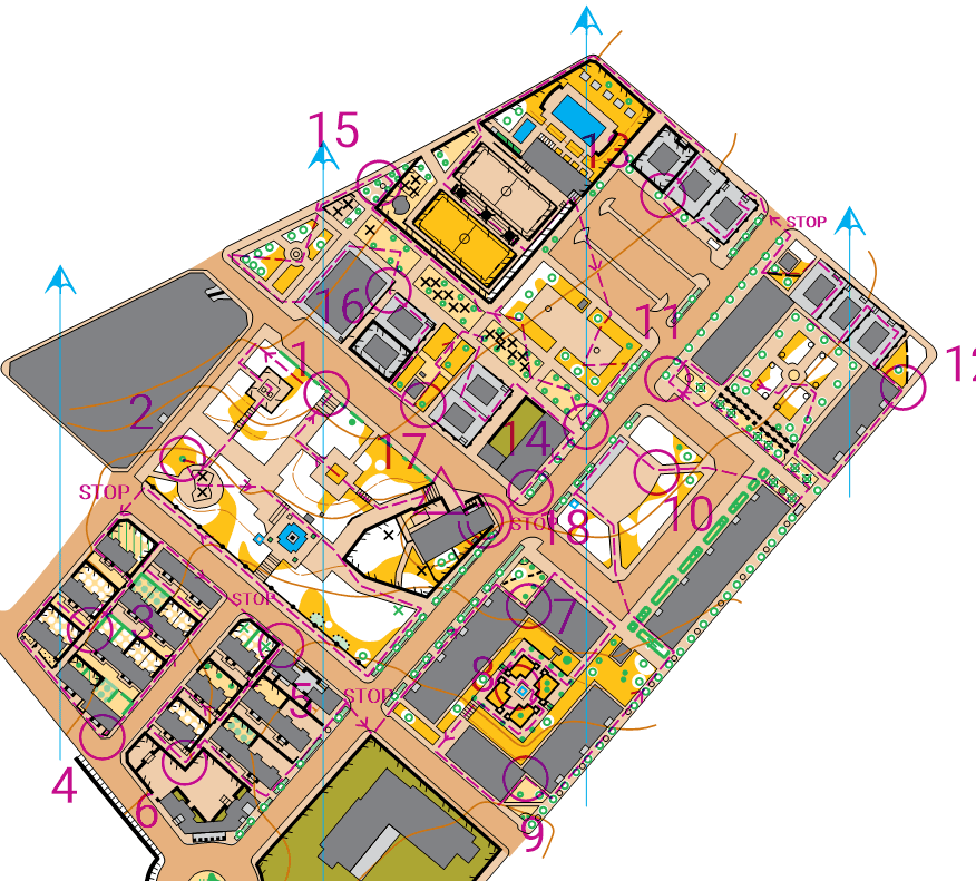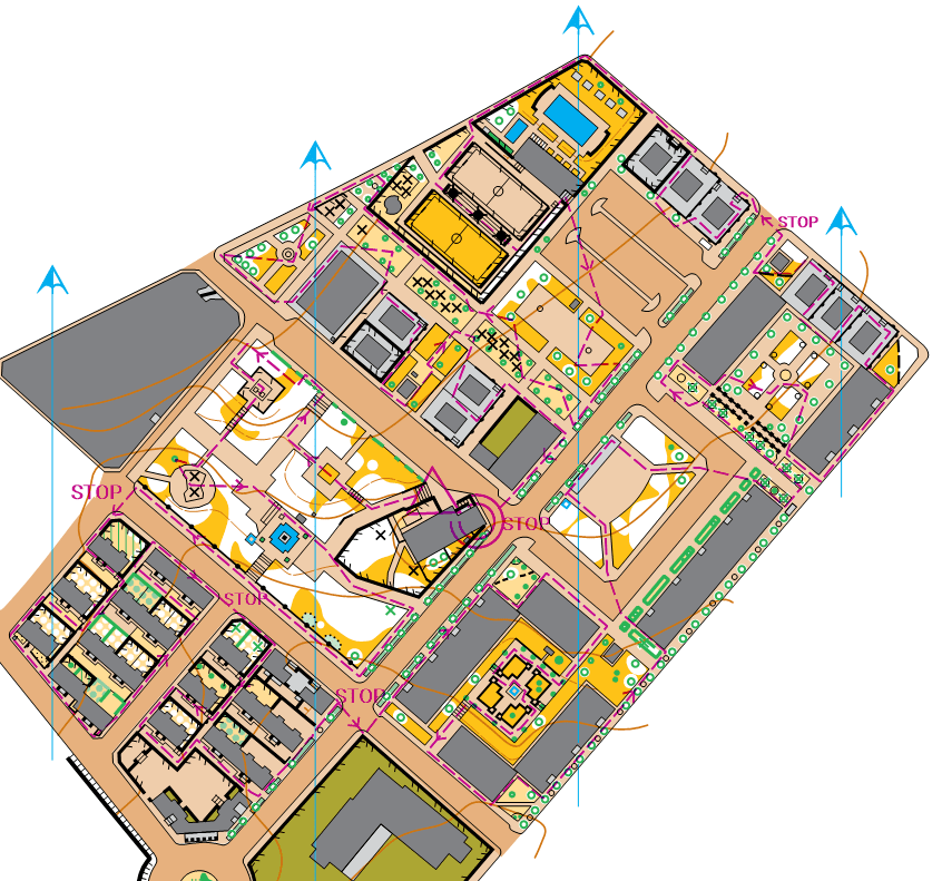 Para la primera, los mapas de los alumnos no presentará ningún círculo magenta que localice los controles (Imagen 1). Si los orientadores siguen perfectamente la línea, irán encontrando una tras otra, las balizas que se han distribuído a lo largo del recorrido. En este caso, la dificutad se irá incrementando según el terreno elegido, desde contextos urbanos más sencillos a mapas de bosque más complejos. La dificultad también se puede ir incrementando modificando la ruta de la línea, pasando de sendas y caminos, a trazados campo a través.