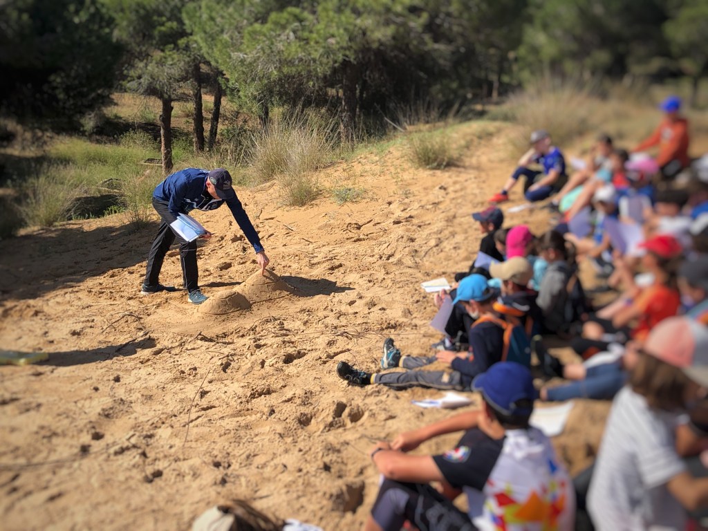 1. Introduciremos el concepto de curvas construyendo una pequeña montaña de arena, en la que el click representará al cartógrafo que recorrerá el montículo sin subir ni bajar (a curva de nivel). Su trayectoria de iniciará y finalizará en el mismo punto. Explicando a los niños que todos los puntos que se encuentran en la línea figuran a la misma altura, y que cuando se traslada al mapa, representa una curva de nivel a una altura concreta del terreno.